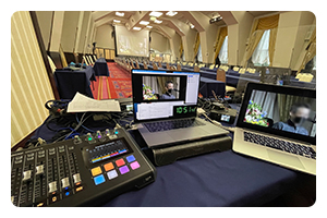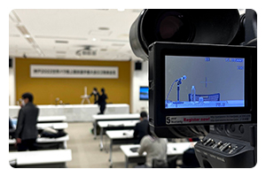 映像機材、撮影スタッフ、Webチャンネル配信設定まですべてをサポートします。動画には、パワーポイントのデータを挿入し、講演者とともに同時に見せることができます。